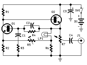 - Set R5 to read 1V RMS on an Audio Millivoltmeter connected to the output with R7 fully clockwise, or to view a sinewave of 2.828V Peak-to-Peak on the oscilloscope.